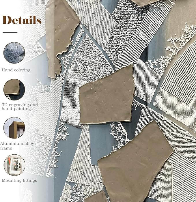- 【3D Effect】-The painting features multiple layers of acrylic paint, creating a striking 3D effect. Under varying light, the artwork reveals different shadows and highlights, adding depth and dynamic charm to your space