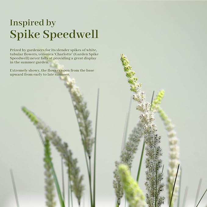 - Lifelike Natural Beauty: Inspired by the natural beauty of veronica spiked speedwell. Every detail, from the textured leaves to the delicate spikelets, is meticulously crafted to mimic the natural beauty of veronica spiked speedwell, adding a touch of elegance to any spaceinspired by veronica spicata grass, this faux plant boasts detailed wheat-like spikelets and lush green leaves, creating a vibrant and fresh atmosphere