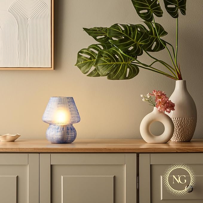 Next Glow Mushroom Lamp – Table Lamp, Modern Dimmable LED Night Light for Bedrooms, Kids Rooms, Bedside Nightstands, Living Room and Kitchen Decor – Pretty Desk Light, E26 Socket w 120V Bulb (Blue)