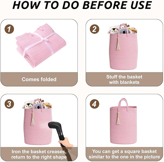 - π[WELL-STRUCTURED & EASY RE-SHAPING]: Heavy duty flexible rope cotton basket was made really strong and it's very durable, tall woven basket can also maintain its shape after use. To recover to it's original shape, fold-able basket is better to fill with some items, like blankets and then steam it with an iron.