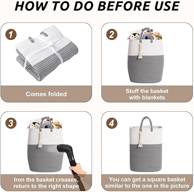 - π[WELL-STRUCTURED & EASY RE-SHAPING]: Heavy duty flexible rope cotton basket was made really strong and it's very durable, tall woven basket can also maintain its shape after use. To recover to it's original shape, fold-able basket is better to fill with some items, like blankets and then steam it with an iron.