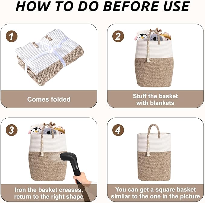 - π[WELL-STRUCTURED & EASY RE-SHAPING]: Heavy duty flexible rope cotton basket was made really strong and it's very durable, tall woven basket can also maintain its shape after use. To recover to it's original shape, fold-able basket is better to fill with some items, like blankets and then steam it with an iron.