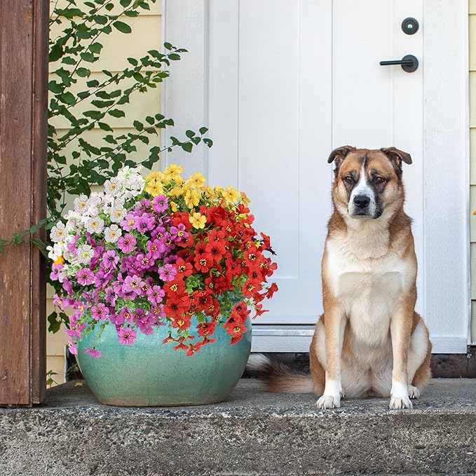 24 Bundles Artificial Flowers for Outdoors Decorations, Fake Flowers Artificial Plants Outdoor, Colorful Daisy Eucalyptus Realistic UV Resistant for Garden Patio Porch Home Decor
