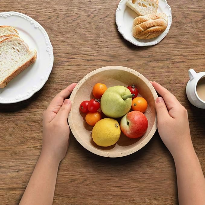 Marble Decorative Bowl for Kitchen Counter, Natural Travertine Serving Bowl with,Modern Display Bowl for Dining Table Centerpiece Home Decor(7.8 Inch)