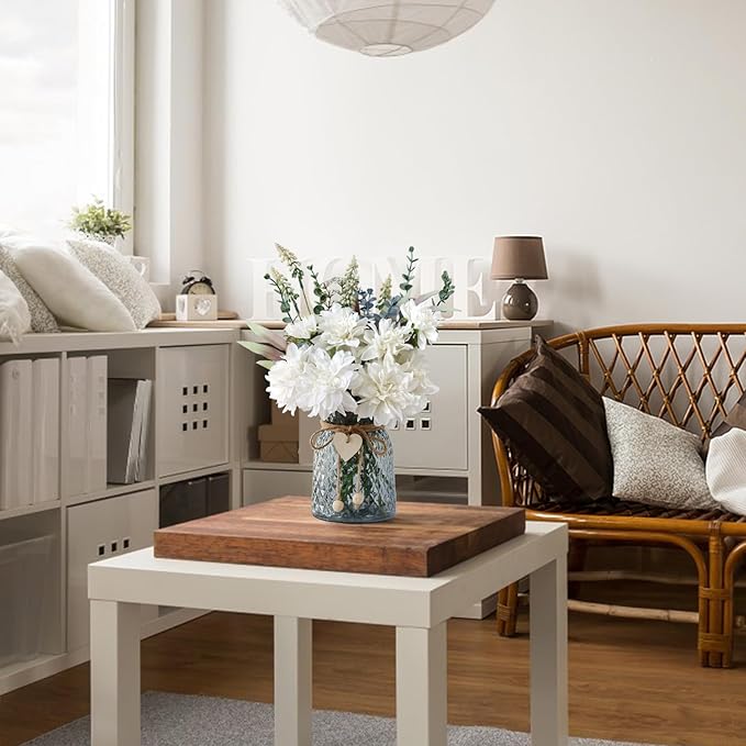 Leftover Fake Flowers in Vase,White Artificial Flowers Centerpieces for Tables,Fake Plant and Faux Flowers for Vase,Silk Flower Arrangements for Home Decor Living Room,Coffee Table Decor