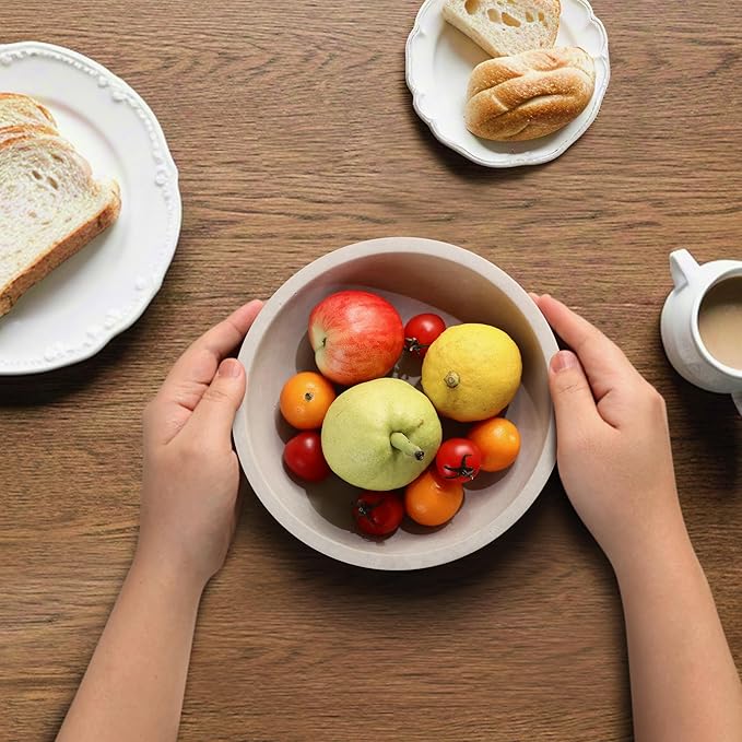 Marble Fruit Bowl for Kitchen Counter - Decorative Serving Bowl with Gray Travertine Design, Modern Home Decor (7.8 Inch)