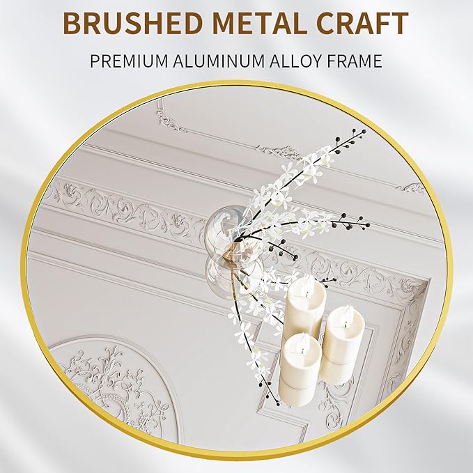 - Modern Brushed Frame Design: 40-inch gold circle mirror is crafted of an aluminum alloy metal sleek frame, making it ideal for bathroom mirror, entrance mirror, vanity mirror, living room mirror