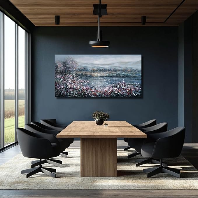 CHUDANHAO Abstract Wall Art for Bedroom White Wall Decor Purple Flower Artwork Landscape Wall Paintings 24"x48" Navy Blue Pictures for Walls