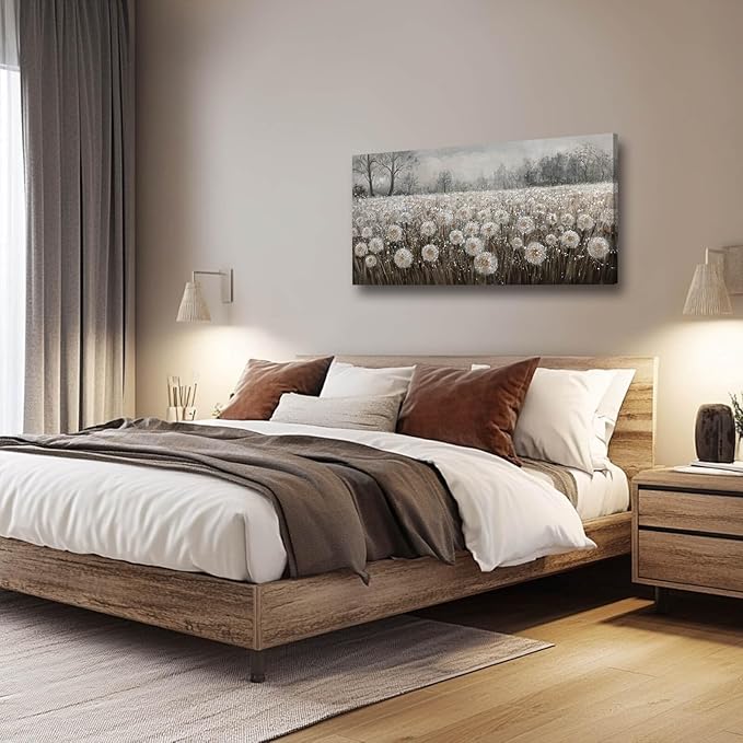 Dandelion Wall Art White Flowers Pictures Cuadros Decorativos Para Dormitorio Canvas Wall Decor Floral Room Decor for Bedroom Girls Room 24"x48"