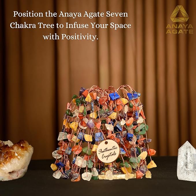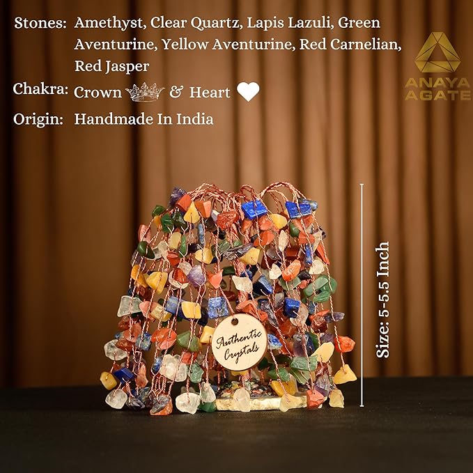 - 7 CHAKRA CRYSTAL TREE OF LIFE FOR POSITIVE ENERGY: Crafted with natural gemstones representing each chakra—Red Jasper, Carnelian, Citrine, Green Aventurine, Lapis Lazuli, Amethyst, and Clear Quartz—to balance energy, attract luck, and enhance well-being.