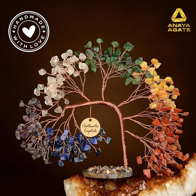- HANDMADE 7 CHAKRA CRYSTAL TREE FOR DECOR & ENERGY: This stunning Tree of Life features over 300 natural gemstone beads and stands 5-5.5 inch tall. Ideal for your home, office desk, meditation space, or altar setup to attract harmony and peace.