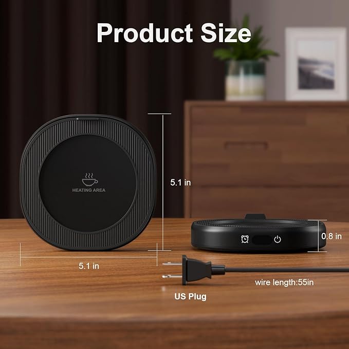 - 4.5 Inches Large Heating Plate: Each cup warmer for desk is equipped with a food-grade silicone cover to protect you from being burned while working. 4.5 Inches large heating plate, oversized base to fit for most mugs (NOT fits for plastic cups), glass cups, stainless steel cups and baby bottles, and you can even use this cup warmer for desk as a candle warmer to fill your room with fragrance. We recommend using the cup with a thin-walled, flat bottom for better heating results