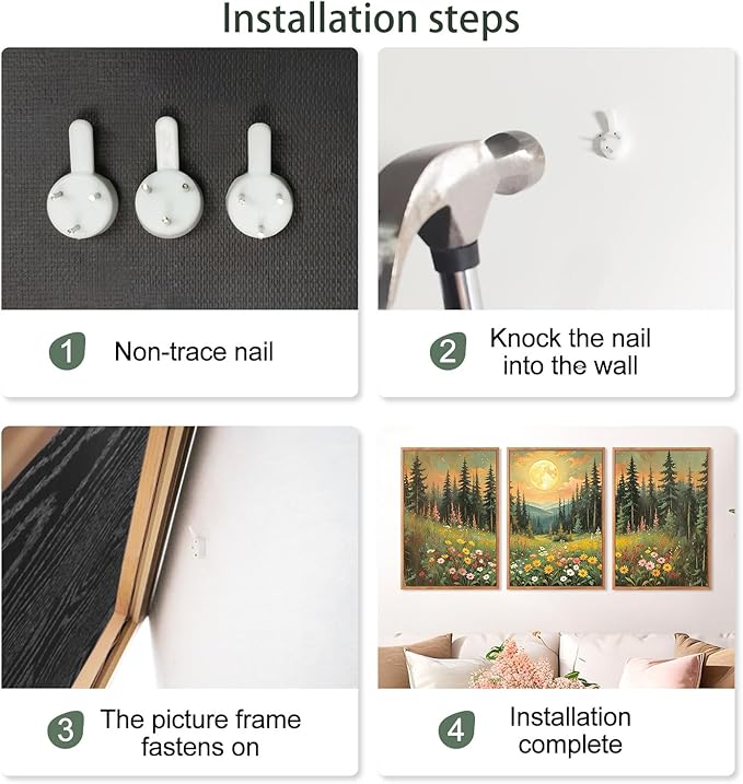 - EASY TO INSTALL: The framed nature inspired full moon wall art set includes three pieces, each measuring 16×24 inches (40×60cm). We provide a complete hanging kit, making it easy for you to hang the artwork when it arrives. Simply measure your wall space and effortlessly display the art.