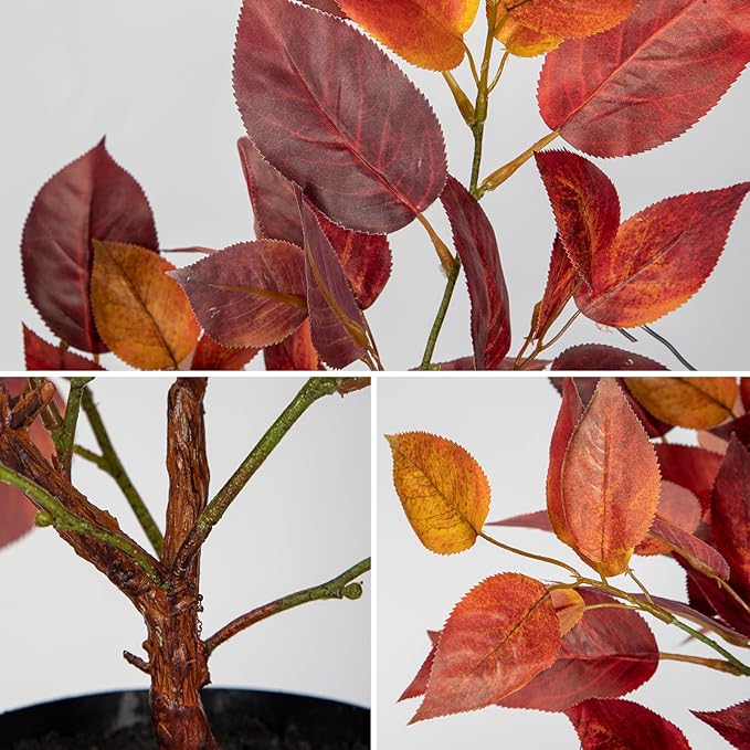 - Vivid Autumn Elm Leaf Design: This artificial fall tree features realistic elm-shaped leaves in a warm blend of deep red, orange tones. Each leaf is carefully crafted from high-quality silk to showcase detailed veins and natural-looking textures that perfectly mimic the colors of fall foliage.