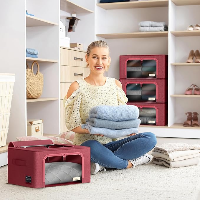 Sorbus Storage Bins with Metal Frame - Stackable & Foldable Clothes Organizer Bags - Oxford Fabric Storage Containers with Large Clear Window & Carry Handles, Bedroom Organization for Bedding & Linen