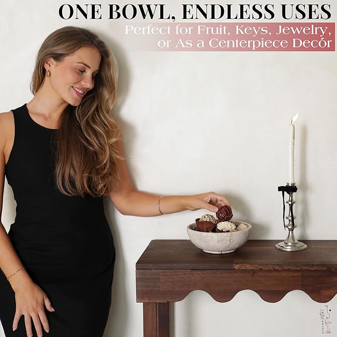 - Premium Stone Tabletop Accent: Carved from natural limestone and weighing nearly 4 lbs, this beige decorative bowl feels as solid as it looks. The felted base keeps it secure and scratch-free, so you can place it anywhere with confidence