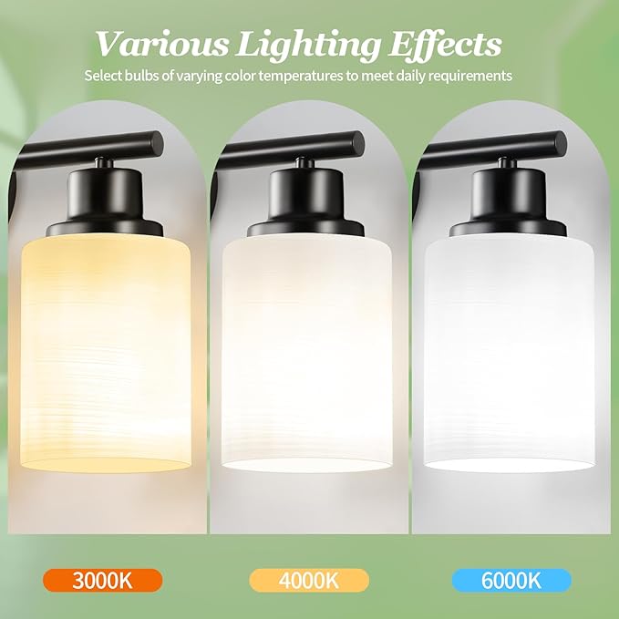 - Soft, Diffused Lighting: Bathroom vanity light design with milky white frosted glass shade gently diffuses light, reducing glare and eye strain. Perfect for makeup, grooming, and other bathroom tasks that require bright, focused lighting