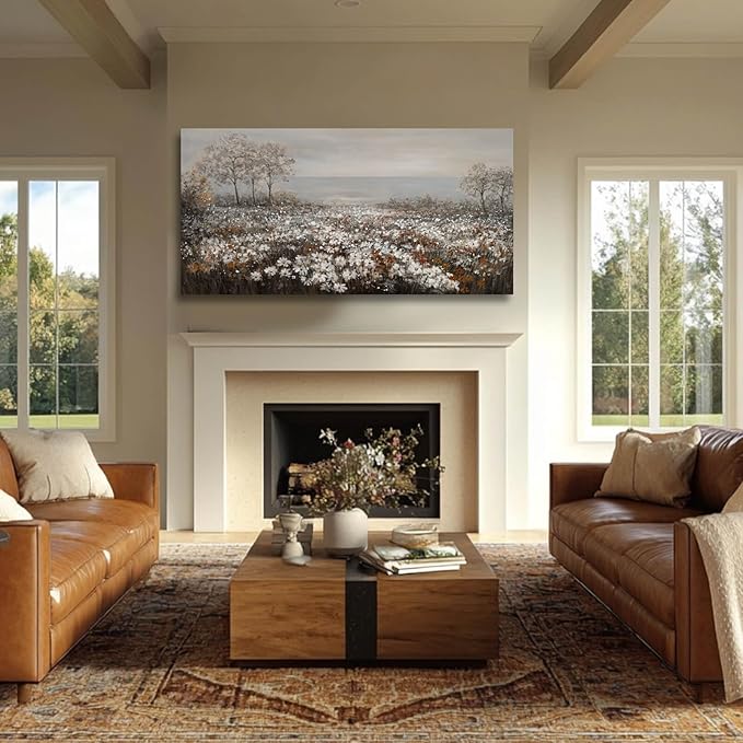 GAIDUOMAI Wildflower Wall Art Rustic Farmhouse Wall Decor Countryside Canvas Prints for Bedroom Large Landscape Painting for Living Room Hallway Decor 29x58 Inch