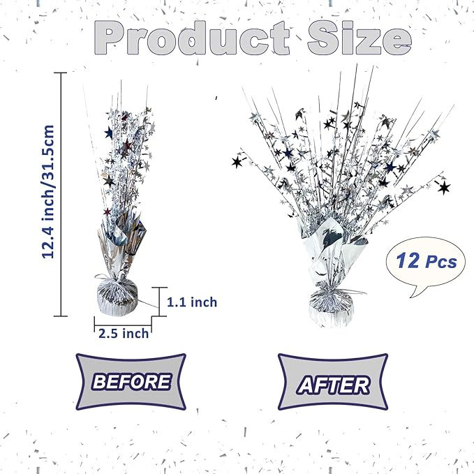 - Star Centerpieces Set: 12 pack metallic foil spray centerpiece for tables, decorated with metallic bristles and stars, shining attractive. Enough to meet your needs for multiple festival decorations purposes, table stars decor ensure to create a vigorous festival atmosphere