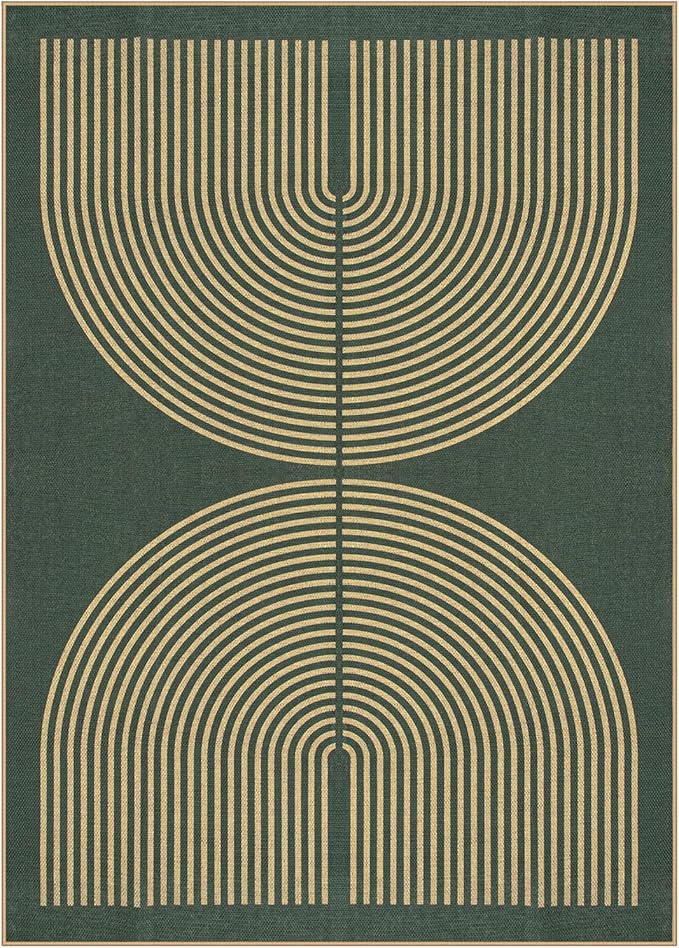 Lahome Modern Rainbow Easy Jute Indoor Outdoor Rugs, 5x7 Dark Green Rug for Living Room Office, Farmhouse Non Slip Non Shedding Floor Carpet for Dining Room Deck Sunroom