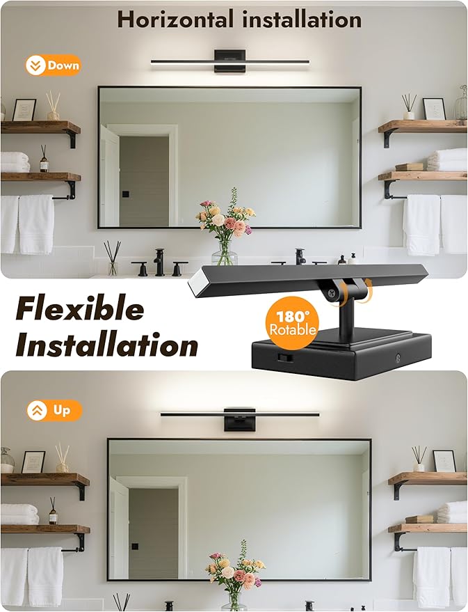 - 【Easy Installation & 180° Flexible Lighting】Seamlessly connects to existing wiring (U.S. standard junction box compatible), while the 180° adjustable light head lets you effortlessly direct illumination precisely where needed—perfect for makeup, shaving, or detailed tasks. Pro tip: Maintain a small gap between ceiling and fixture for easy screw tightening during installation."