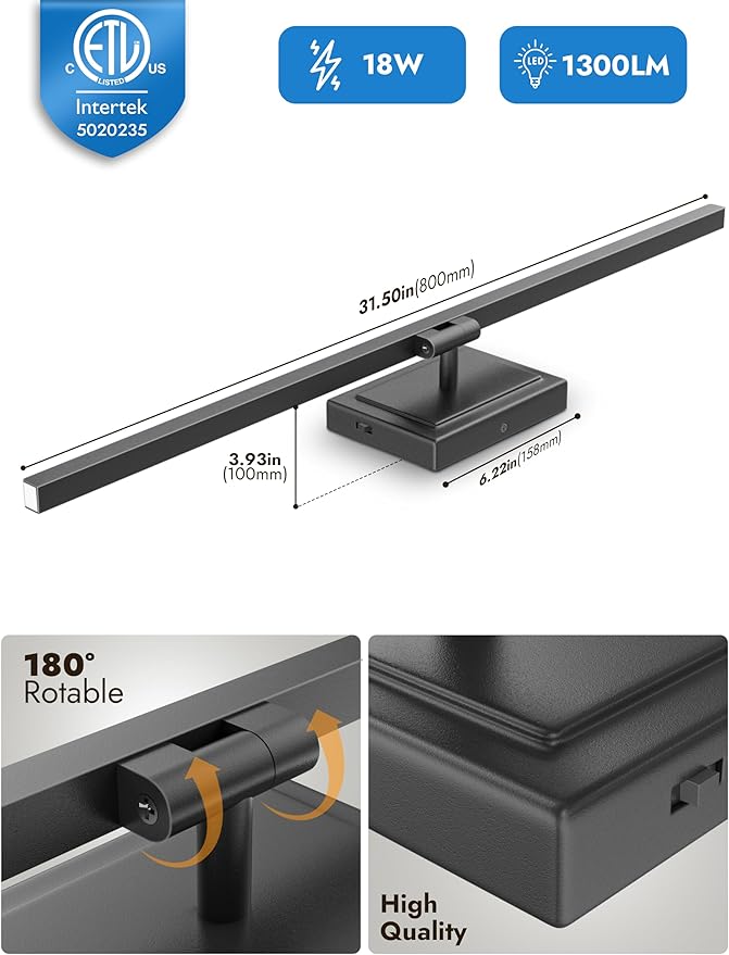- 【Premium Construction】 Crafted from durable metal and pure white acrylic, this vanity lights for bathroom is built to withstand humid environments with its IP44 waterproof and dustproof rating. The power driver is ETL certified, ensuring safety and reliability.