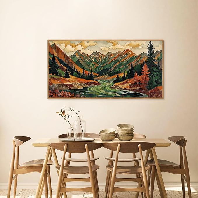 - 【Size】The size of the rustic mountain landscape framed canvas wall art set is: 20x40inch (50x100cm).Vintage print artwork use high-quality environmentally friendly ink and high-quality canvas, and use the industry's top printers for layered spraying, the colors are delicate and the transition is natural.bring you visual enjoyment.