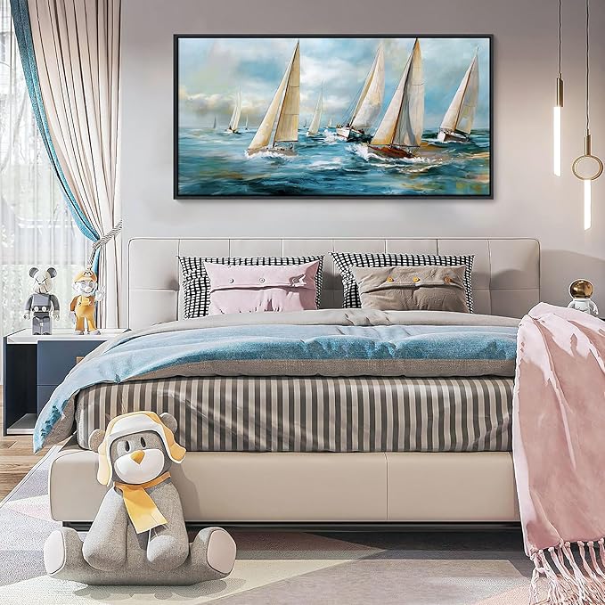 - 【Sailboat Wall Art Size】24x48 inches, modern living room wall decor living room canvas artwork.