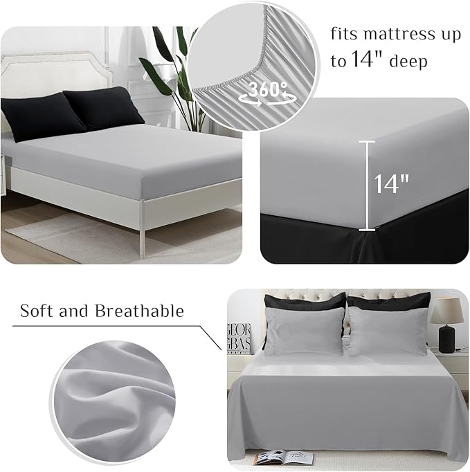 JOLLYVOGUE California King Comforter Set, Ultra-Soft Cal King Bed Comforter Set, 7-Piece Bed in a Bag, Goose Down Alternative, Oeko-TEX Certified, Sheets & Pillowcases, Black & Light Grey