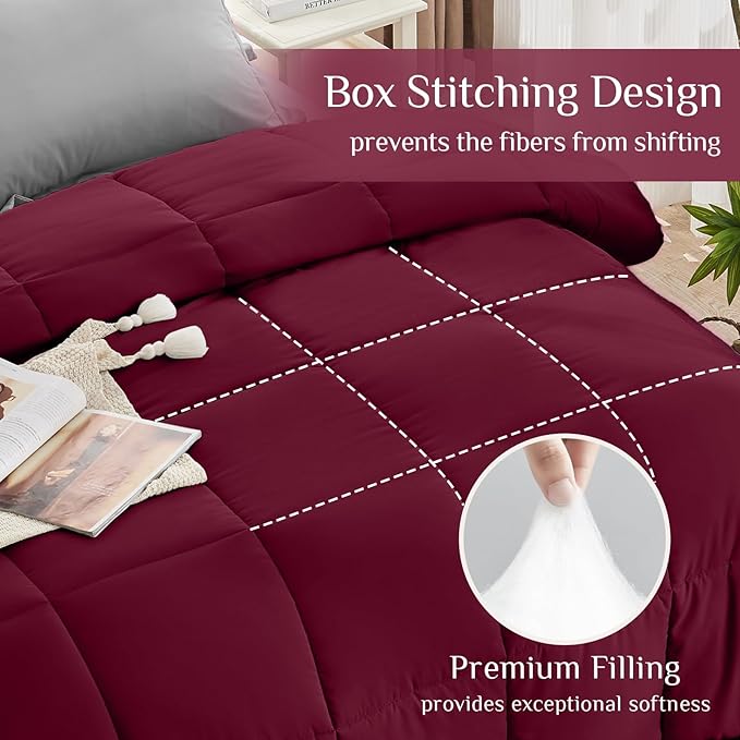 JOLLYVOGUE Twin XL Comforter Set, Ultra-Soft Bed in a Bag Twin XL Size 5 Pieces, Oeko-TEX Certified Bedding Set with Down Alternative Comforter, Sheets, Pillowcases & Shams, Burgundy & Black