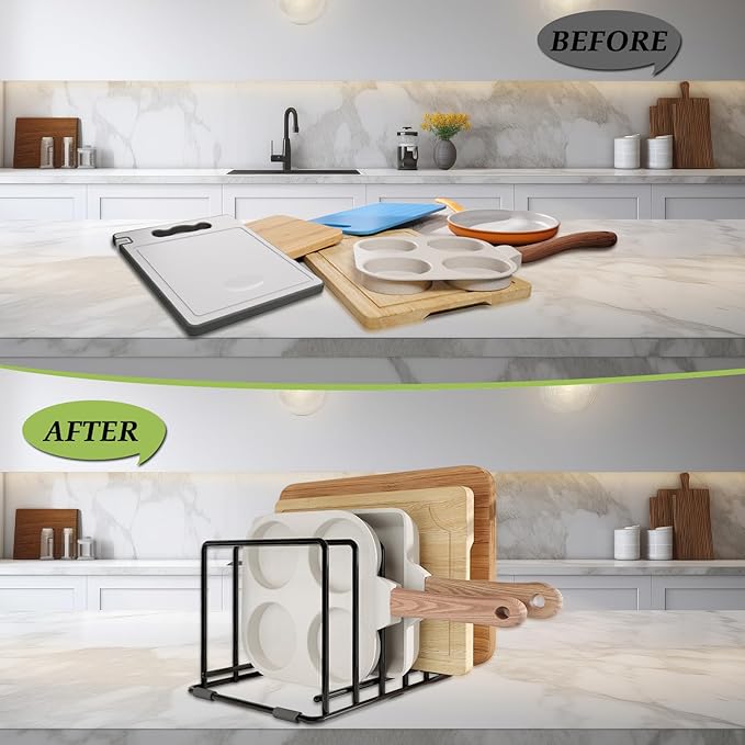- ๐๐๐ฌ๐ข๐ ๐ง๐๐ ๐๐จ๐ซ ๐๐๐ค๐๐ฐ๐๐ซ๐, ๐๐จ๐จ๐ค๐ข๐ ๐๐ก๐๐๐ญ๐ฌ & ๐๐จ๐ซ๐: Upgrade your kitchen storage with this versatile 5-slot organizer, engineered for baking sheets, cookie trays, muffin pans, and even cutting boards. Whether you bake weekly or daily, this rack keeps your essential bakeware neatly upright and instantly accessible.