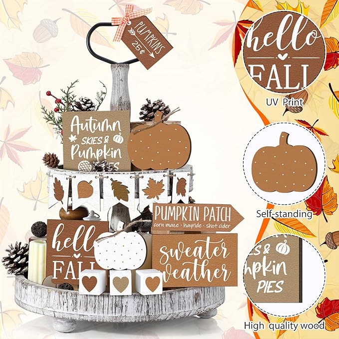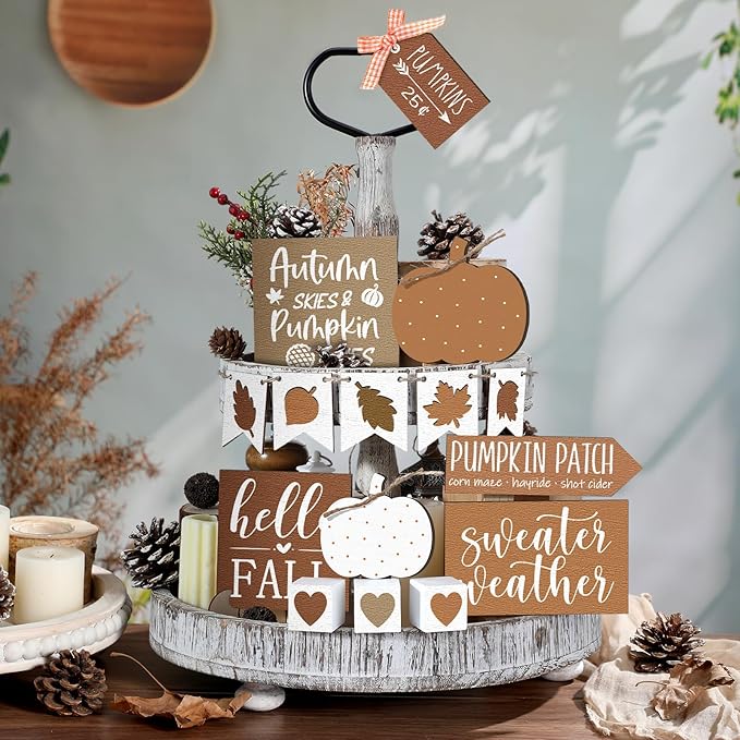 - Tiered Tray Decors Set: you will receive 15 pieces of fall tiered tray decors , sufficient and abundant, adorable and elegant, suitable for decorating your tiered trays in fall, Thanksgiving Day