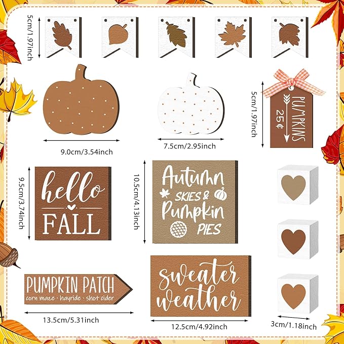 - Widely Applicable Occasions: fall decorations for home in addition to be applied for tiered trays, our wooden centerpiece sign can also be displayed on the dining table, fireplace, cabinet, shelf and so on, and we also have prepared 2 wood holders and double-sided tape point to help you better fix them, besides, we also prepared a 3.28 ft/ 1 meter long rope for you, so you can hang it on the wall, window, door, tree and other places