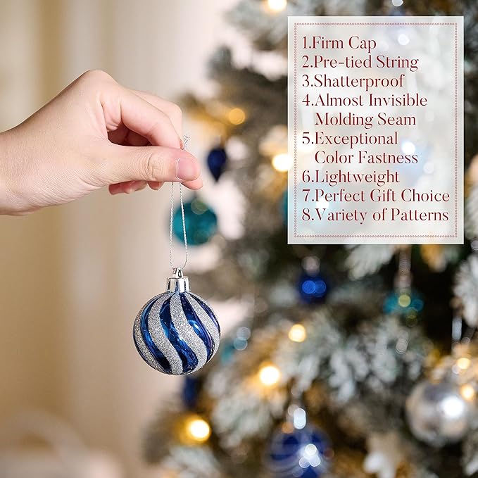 - 【Exquisite Craftsmanship】Our Christmas tree ornaments include variety of special finishes: mercury, mottled, shiny, matte, and glitter. The multi-finish and novelty shape ornaments meet all your favorite tree ornament needs, and the molding seam is almost invisible, making them look exquisite