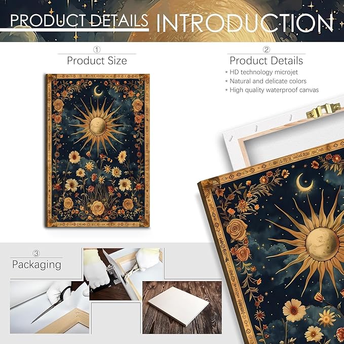 - Gift for Mystics and Astrology Lovers: This tarot and celestial-themed art set makes the perfect gift for astrology enthusiasts or anyone captivated by sun and moon decor. Ideal for Christmas, birthdays, holidays, or any special occasion.