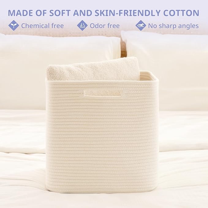 - 100% Cotton Rope Woven Storage Bins:OIAHOMY soft woven storage cubes are made of high-quality natural cotton, chemical free and safe for kids and pets. It will not scratch your furniture and floor, firm and easy to carry