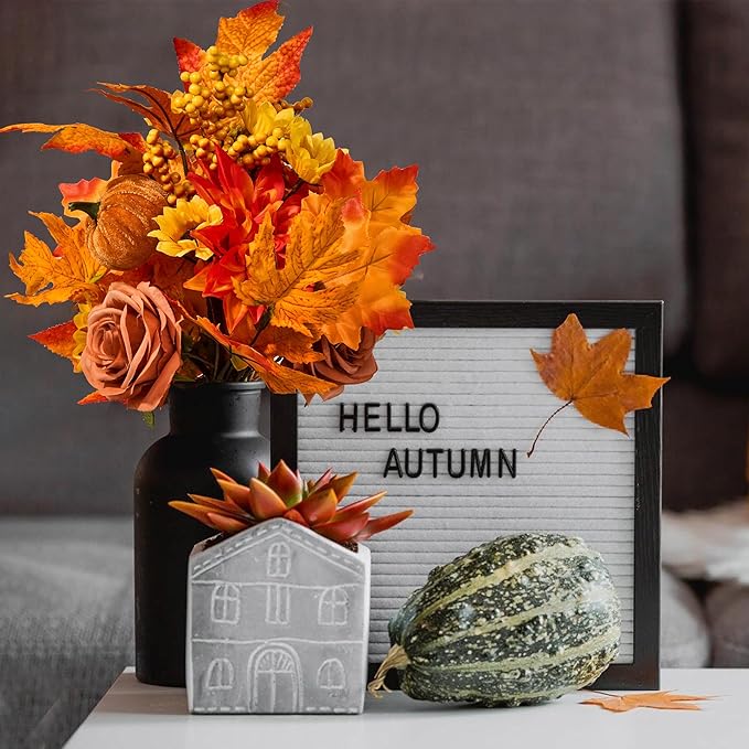 - 【Premium-Quality, Customizable Materials】Crafted with care, our fall bouquets are built to last. The daisy and maple leaves are made from luxurious silk cloth, offering a soft, realistic texture. High-quality plastic forms the sturdy stems and eucalyptus leaves, while the foam pumpkins add a lightweight yet durable touch. The flexibility of these materials allows you to effortlessly trim, bend, and shape the bouquets to fit any design vision, ensuring they seamlessly integrate into your decor.