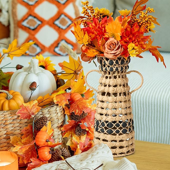 - 【Versatile Decor for Every Setting】With two bundles, these fall silk flower arrangements are a versatile addition to any indoor or outdoor space. Whether adorning your living room coffee table, dining table centerpiece, bedroom windowsill, or garden pathway, they infuse elegance and warmth. Perfect for weddings, parties, or everyday use, they effortlessly set a romantic and sophisticated ambiance, making every occasion feel special.