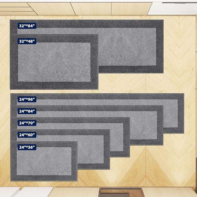 • SUPER ABSORBENT: With countless polyester microfibers, our kitchen rugs efficiently absorb spilled oil and water.This sophisticated look will elevate any space, including living room, kitchen, bedroom, bathroom, and hallways.