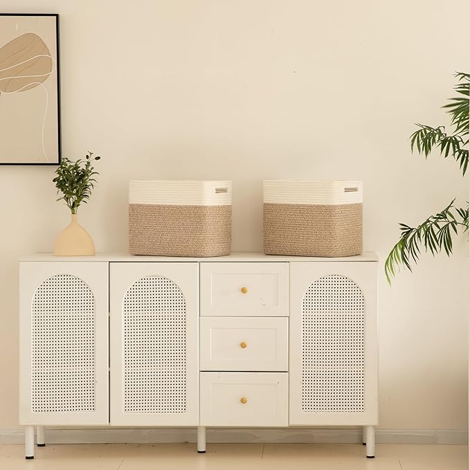 - Rectangle Woven Baskets for Organizing: We designed the toy basket to be square, stand more firmly, but also easier to regain shape. The neutral design and color can be adapted to most of the decoration, and the 2-piece set can also be used for classification and storage, which will be more convenient to find