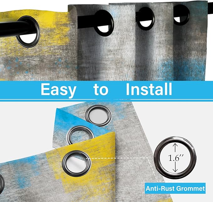 - [Noise Reduction & Privacy Protection]: These blue yellow blackout curtains can block 50% of sunlight, providing you with a comfortable environment to enjoy your favorite movies or have a good night's sleep. The room blackout curtains were thick and heavy,they can reduce noise and provide privacy. Abstract patterns are so decorative that they can also be used as room divider curtains.