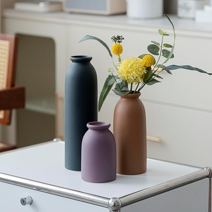 - Stylish Set: This set includes 3 decorative ceramic vases in a modern, boho-inspired style.