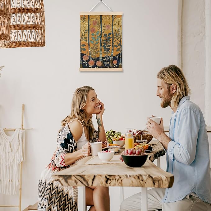 FITIE Vintage William Morris Inspired Rose Flower Tree Wall Art Poster Framed, Rustic Farmhouse Decor, Abstract Art Decor, Retro Mid Century Modern Floral Botanical Canvas Wall Art Prints for Home Office, 12x16 Inches