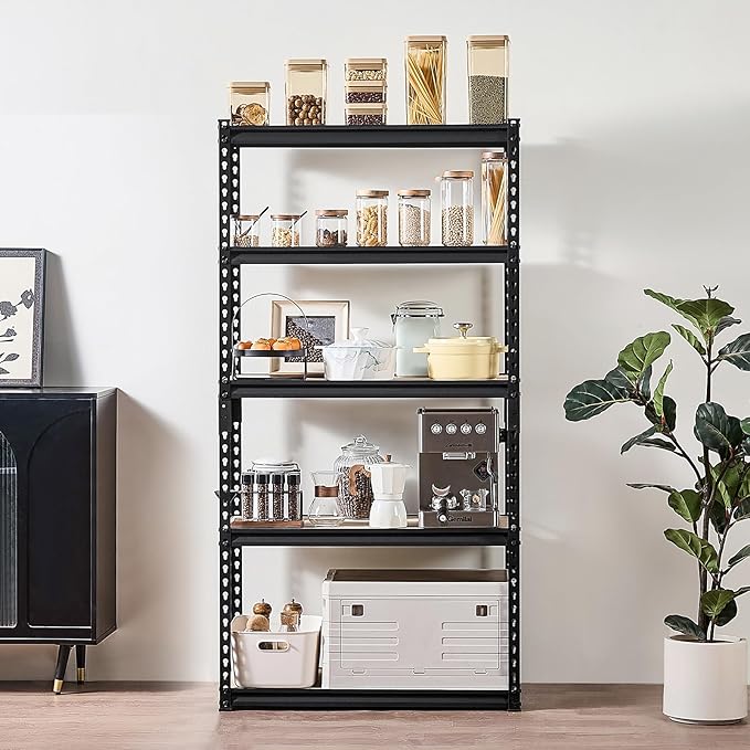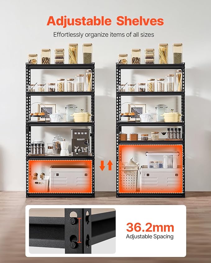 VEVOR Storage Shelves, 2000 lbs, 5 Tier Garage Storage Shelving, 16" D x 32" W x 62.8" H Adjustable Metal Shelves for Garage Shelves Utility Rack Shelf, Ideal for Kitchen, Warehouse, Basement, Black
