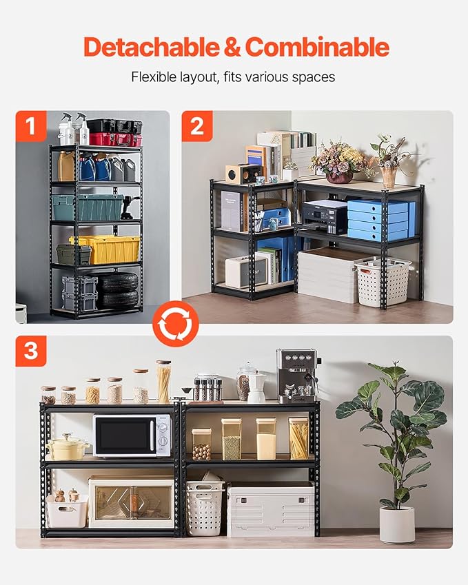 - Split Design: This garage shelving unit can be split into two separate racks for flexible use in spaces with height restrictions, such as under stairs, basements, or hallway corners.