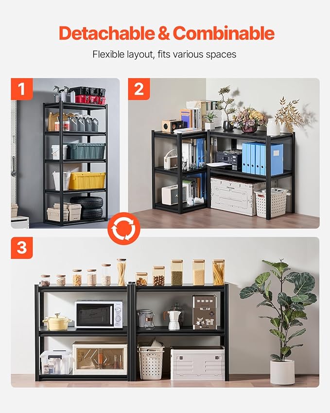 VEVOR Storage Shelves, 2000 lbs, 5 Tier Garage Storage Shelving, 18" D x 36" W x 72" H Adjustable Metal Shelves for Garage Shelves Utility Rack Shelf, Ideal for Kitchen, Warehouse, Basement, Black
