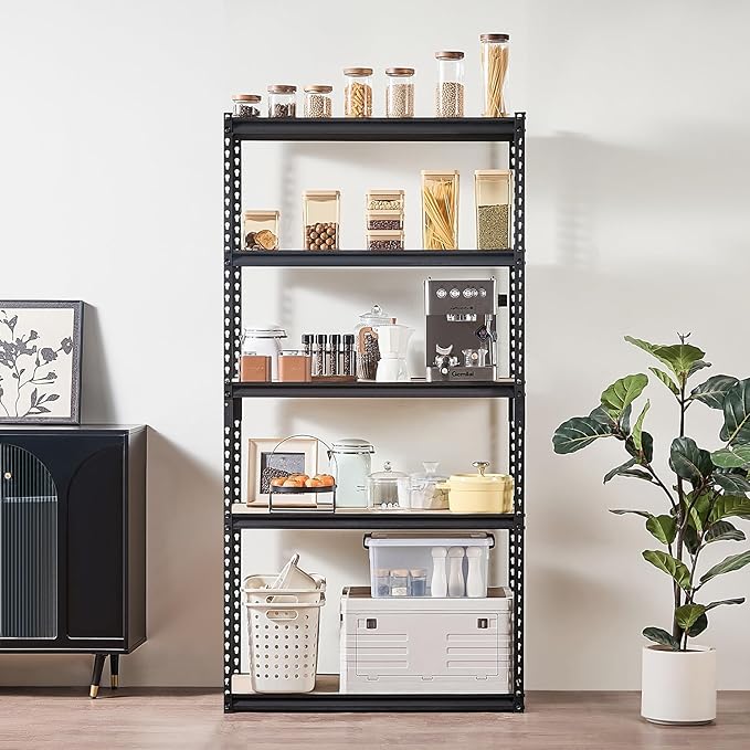 VEVOR Storage Shelves, 2000 lbs, 5 Tier Garage Storage Shelving, 16" D x 36" W x 71.4" H Adjustable Metal Shelves for Garage Shelves Utility Rack Shelf, Ideal for Kitchen, Warehouse, Basement, Black