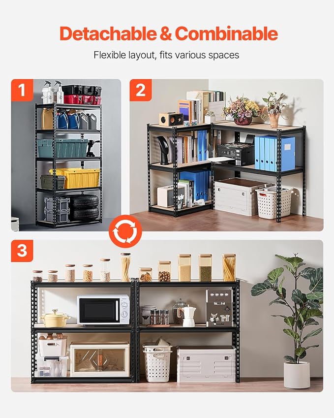 - Split Design: This garage shelving unit can be split into two separate racks for flexible use in spaces with height restrictions, such as under stairs, basements, or hallway corners.