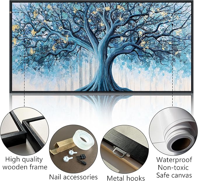 - Tree of Life Wall Art: Printed on high-definition canvas with eco-friendly inks and finished with hand-applied gold foil, this artwork is fade-resistant, waterproof, and UV-resistant.