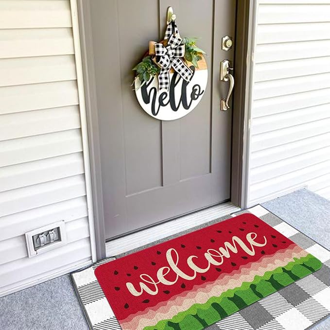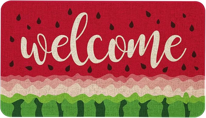 - High quality material: The summer watermelon welcome door mat is made of high quality linen, tear-resistant, soft, thick, stain-resistant, shrink-proof easy to air dry, protect your floors from moisture, stains and scratches.